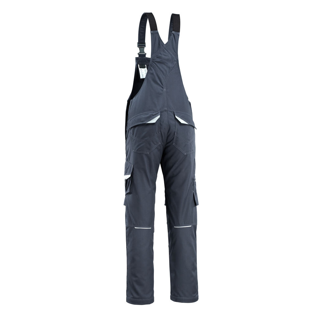 Antistatisch, flammhemmend und mit Säureschutz. Schmutzabweisend. Schützt bei Lichtbögen und bei gelegentlichem Schweißen. Zweifache und dreifache Kappnähte an den Beinen und im Schritt. Schulterträger aus Stoff, verstellbar und mit kurzem, kräftigem Gummizug sowie Kunststoffschnallen versehen. Latztasche mit Stiftfach und Patte mit verdeckten Druckknöpfen. Handytasche mit Reißverschluss. Bund ist regulierbar. D-Ring. Hosenschlitz mit Reißverschluss. Hosenbeine sind ergonomisch geformt. Vordertaschen. Gesäßtaschen, verstärkt, mit Patte und verdeckten Druckknöpfen. Schenkeltasche mit Patte und verdeckten Druckknöpfen. Handyschenkeltasche. Zollstocktasche, verstärkt. Knietaschen, höhenregulierbar und mit Patte sowie Eingriff von oben. Die Schrittlänge kann um 3 cm verlängert werden, indem die rote Naht innen am Beinabschluss entfernt wird. Reflexeffekte. Wir empfehlen den 00718-100, 50451-916 & 20118-915 Knieschutz zu diesem Modell.