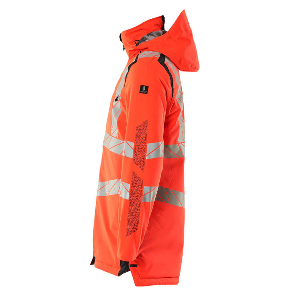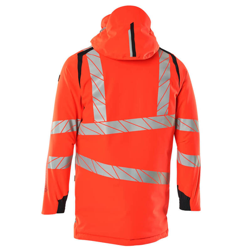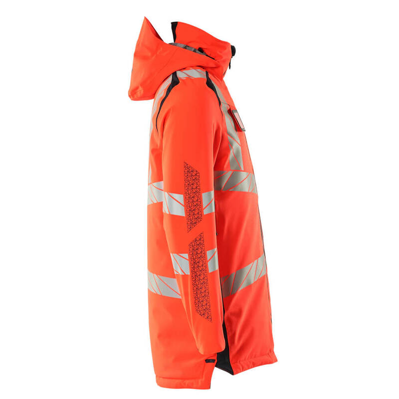Fluoreszierend und mit Reflexschulterstreifen sowie schrägverlaufenden Reflexen. Ausgezeichnete atmungsaktive Eigenschaften sowie wind- und wasserdicht. Mit CLIMASCOT® Lightweight Insulation. Zweifarbig. Nähte sind verklebt. Kapuze ist abnehmbar, gefüttert und mit verstellbaren Elastikschnüren versehen. Verschluss mit wasserdichtem Reißverschluss und inwendiger Wetterschutzleiste. Innentaschen - zwei mit Reißverschluss sowie eine offene aus Netzmaterial. ID-Kartenhalter ist abnehmbar. Brusttasche mit wasserdichtem Reißverschluss. Vordertaschen mit wasserdichten Reißverschlüssen. Stehkragen. Vorne in der Jacke Rippenbund an der Unterkante innen. Verlängerter Rücken durch herunter knöpfbaren Stoff zum besseren Schutz vor Wind und Wetter. Gummizug an den Handgelenken. Reißverschluss im Futter am Rücken zum Anbringen eines Logos/einer Stickerei. Druckeffekten.