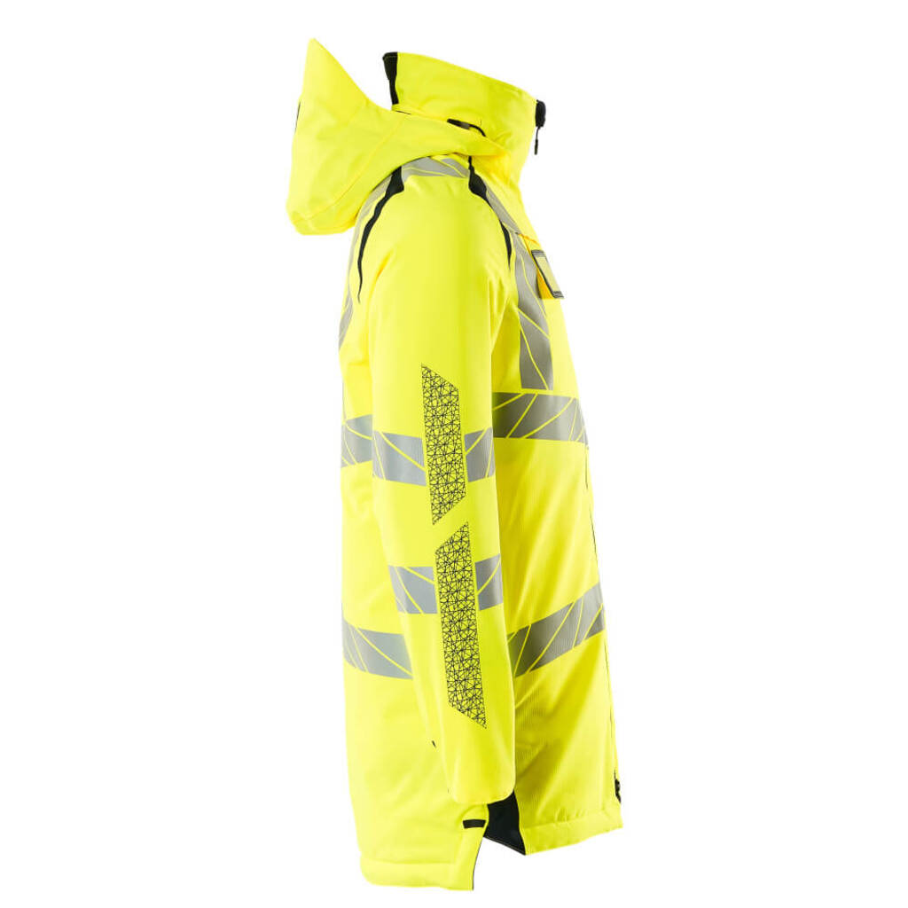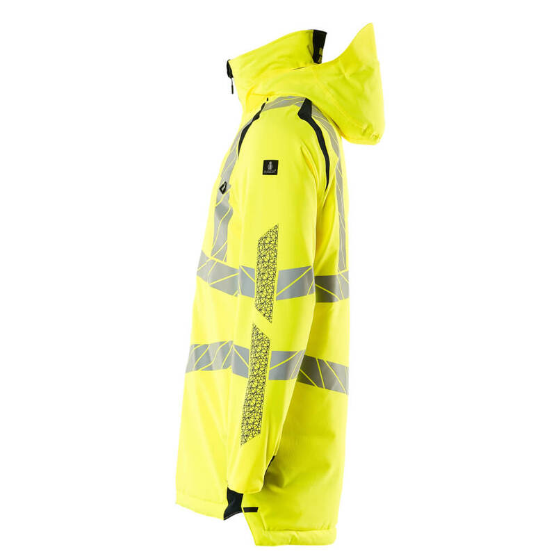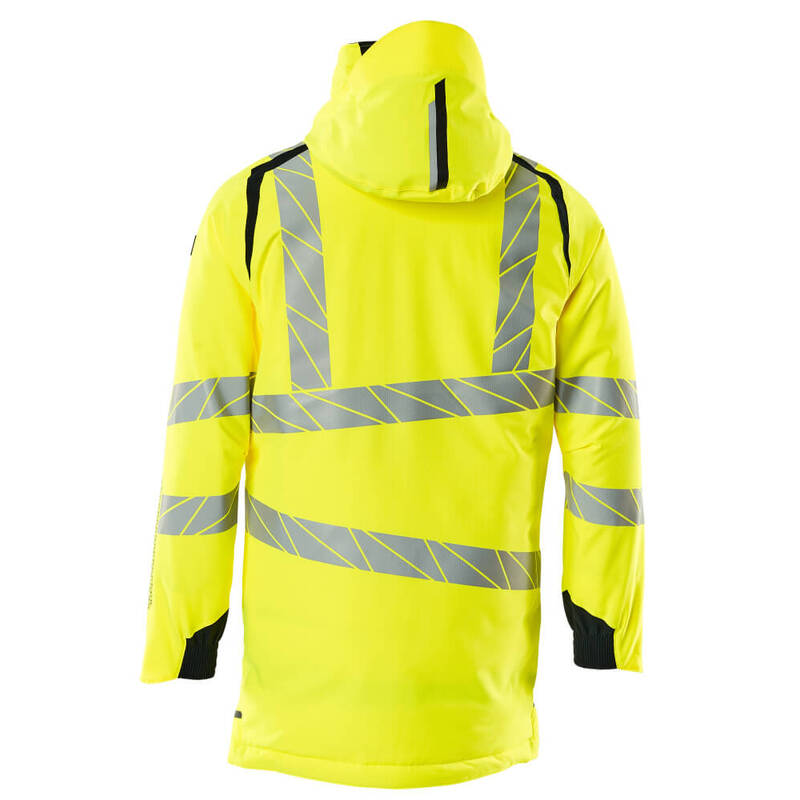 Fluoreszierend und mit Reflexschulterstreifen sowie schrägverlaufenden Reflexen. Ausgezeichnete atmungsaktive Eigenschaften sowie wind- und wasserdicht. Mit CLIMASCOT® Lightweight Insulation. Zweifarbig. Nähte sind verklebt. Kapuze ist abnehmbar, gefüttert und mit verstellbaren Elastikschnüren versehen. Verschluss mit wasserdichtem Reißverschluss und inwendiger Wetterschutzleiste. Innentaschen - zwei mit Reißverschluss sowie eine offene aus Netzmaterial. ID-Kartenhalter ist abnehmbar. Brusttasche mit wasserdichtem Reißverschluss. Vordertaschen mit wasserdichten Reißverschlüssen. Stehkragen. Vorne in der Jacke Rippenbund an der Unterkante innen. Verlängerter Rücken durch herunter knöpfbaren Stoff zum besseren Schutz vor Wind und Wetter. Gummizug an den Handgelenken. Reißverschluss im Futter am Rücken zum Anbringen eines Logos/einer Stickerei. Druckeffekten.