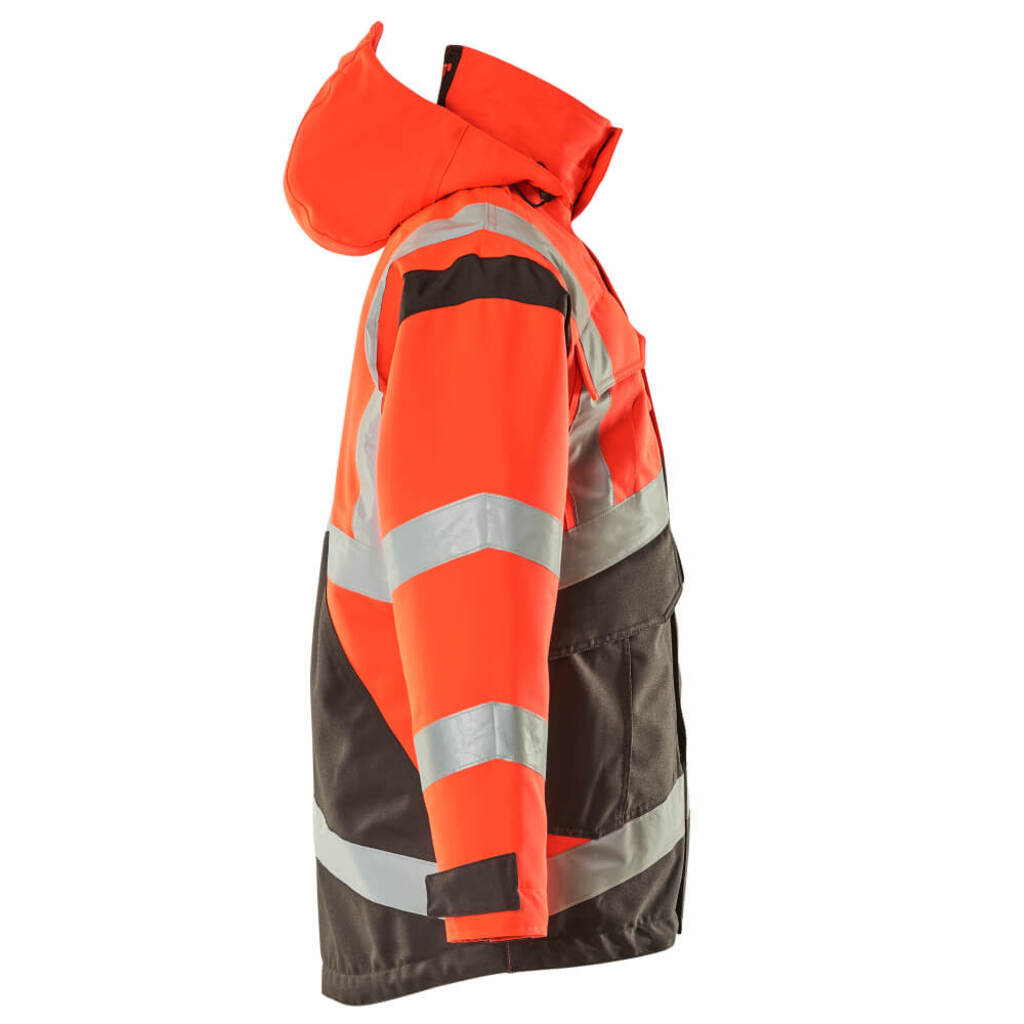 Fluoreszierend und mit Reflexschulterstreifen sowie schrägverlaufenden Reflexen. Zweifarbig. Atmungsaktiv, wind- und wasserdicht. Nähte sind verklebt. Kapuze ist abnehmbar, gefüttert und mit verstellbaren Elastikschnüren versehen. Futter aus Stepp mit Reißverschluss herausnehmbar und separat tragbar - mit Rippenbundkragen und Taschen versehen. Innenkragen aus weichem, strapazierfähigem Material. Verschluss mit Zwei-Wege-Reißverschluss, doppelter Wetterschutzleiste und verdeckten Druckknöpfen. Reißverschlusstaschen unter der Wetterschutzleiste. Brusttasche mit Reißverschluss. Brusttasche mit Patte und Magnetverschluss. D-Ring. Stifthalter. Vordertaschen - zwei offene und zwei mit Patte und Druckknopf. Innentasche mit Reißverschluss. Ergonomisch geschnittene Ärmel ermöglichen hohe Bewegungsfreiheit. Ärmeltasche mit Reißverschluss. Rippenbündchen (verdeckt unter der Wetterschutzleiste) und Druckknopfverschluss an den Handgelenken. Gummizug in der Unterkante, regulierbar. Produkte, die Magnete enthalten, dürfen NICHT von Personen mit einem Herzschrittmacher/ICD o.ä. getragen werden.