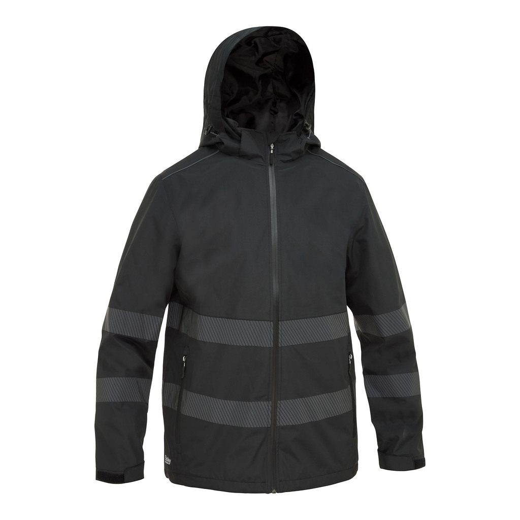 Für erhöhte Sichtbarkeit sorgt das reflektierende, segmentierte Bandmuster mit Biomotion-Taping an den Ärmeln, ideal für Arbeiten bei schlechten Lichtverhältnissen. Die abnehmbare Kapuze und innenliegende Strickbündchen bieten Flexibilität und Komfort.