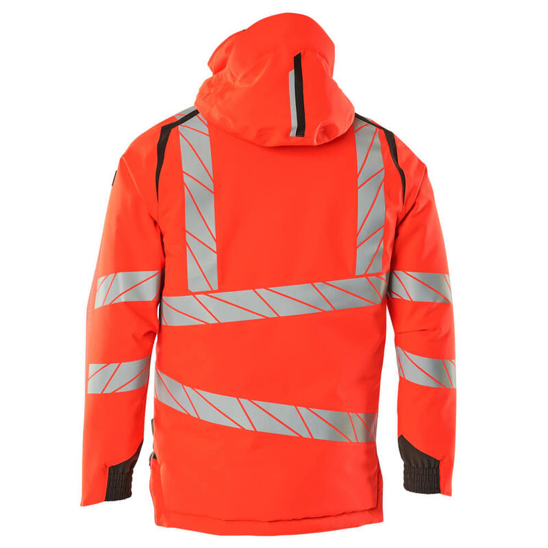 Fluoreszierend und mit Reflexschulterstreifen sowie schrägverlaufenden Reflexen. Ausgezeichnete atmungsaktive Eigenschaften sowie wind- und wasserdicht. Mit CLIMASCOT® Lightweight Insulation. Zweifarbig. Nähte sind verklebt. Kapuze ist abnehmbar, gefüttert und mit verstellbaren Elastikschnüren versehen. Verschluss mit wasserdichtem Reißverschluss und inwendiger Wetterschutzleiste. Innentaschen - zwei mit Reißverschluss sowie eine offene aus Netzmaterial. ID-Kartenhalter ist abnehmbar. Brusttasche mit wasserdichtem Reißverschluss. Vordertaschen mit wasserdichten Reißverschlüssen. Stehkragen. Vorne in der Jacke Rippenbund an der Unterkante innen. Verlängerter Rücken durch herunter knöpfbaren Stoff zum besseren Schutz vor Wind und Wetter. Gummizug an den Handgelenken. Reißverschluss im Futter am Rücken zum Anbringen eines Logos/einer Stickerei. Druckeffekten.