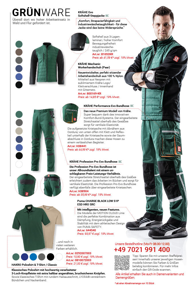 Neue KRÄHE Artikel für den Arbeitseinsatz in Wald und Flur.