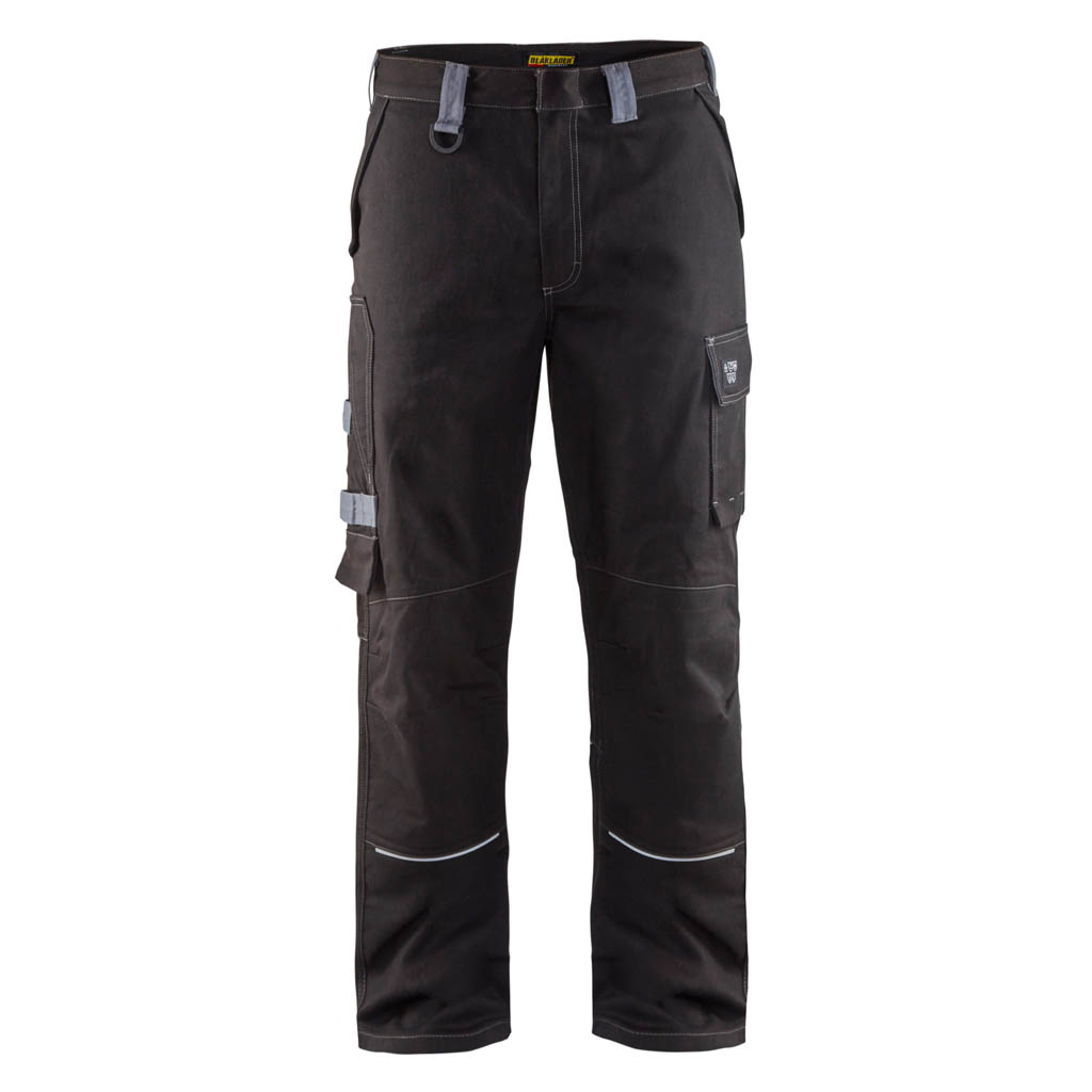 Robuste Flammschutz Arbeitshose mit vorgeformten Knien und flexiblen, praktischen Taschen, wie z.Bsp. Kniepolstertaschen auf zwei verschiedenen Höhen. An den Beinen sorgen Reflexpaspelierungen für erhöhte Sichtbarkeit. Industriewäsche geeignet. Der Stoff hat eine Lichtbogenfestigkeit von EN 61482-1-1 atpv 8.2 cal/cm2. Zertifiziert nach EN 1149-5, IEC 61482-2 Klasse 1. EN ISO 11611 Klasse 1 A1. EN ISO 11612 A1, B1, C1, E1, F1. EN 13034 PB [6]. ATPV: 16,0 cal/cm2, HAF: 82,0%.