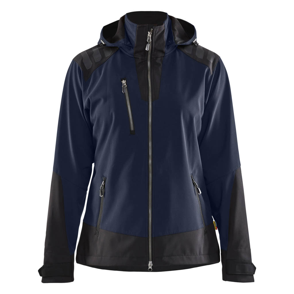 Flexible und vielseitige Softshell Jacke mit femininem Schnitt und verstellbarer Kapuze. Dunkle Reflektoren an Schultern und Rücken sowie robuste Reißverschlüsse. Die Jacke ist auf maximale Bewegungsfreiheit ausgelegt und besteht aus einem dehnbaren, wind- und wasserdichten Gewebe.