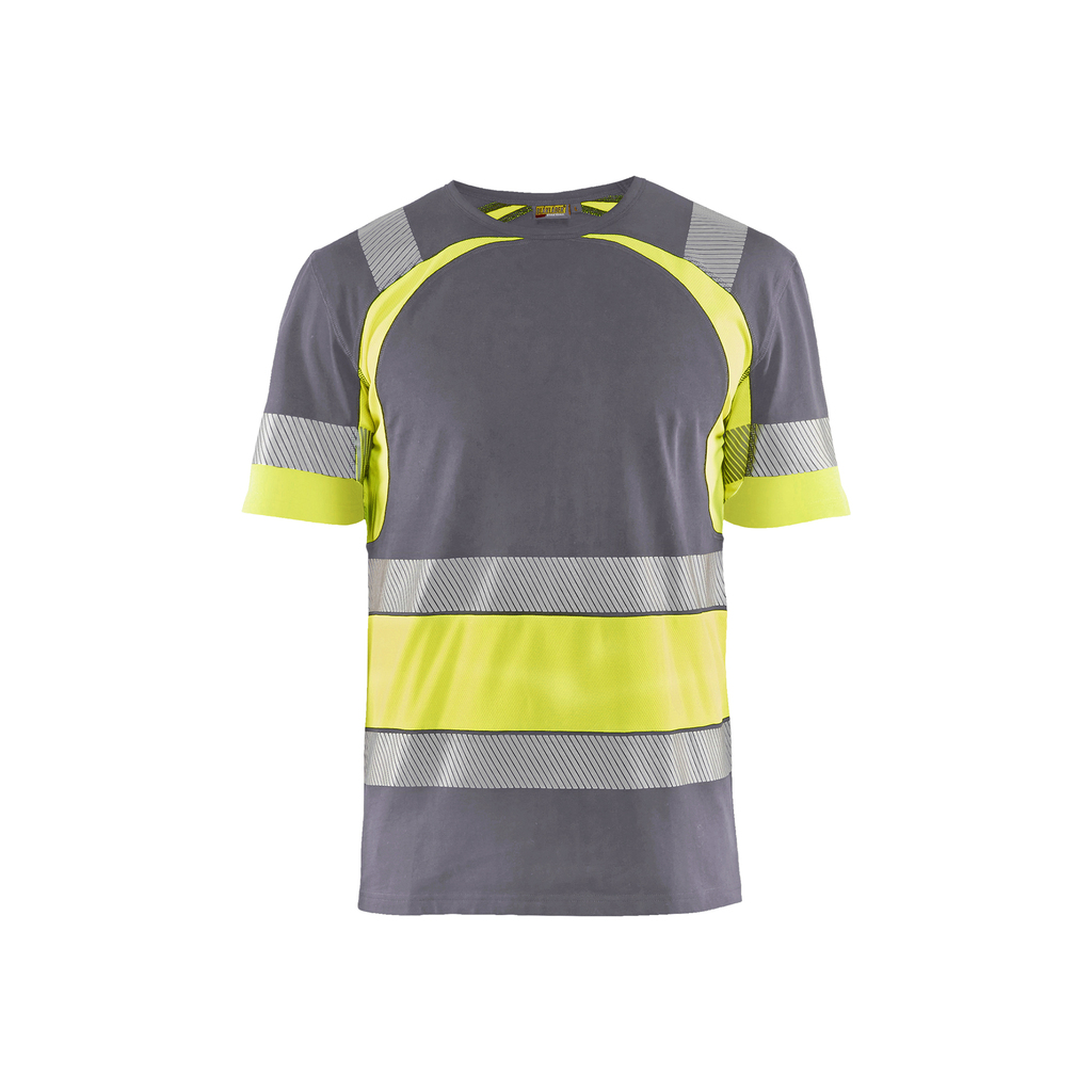 Modernes, weiches, bequemes Baumwoll-T-Shirt. Hi-vis Stoffbesatz mit gutem Feuchtigkeitstransport. Rundhalsausschnitt mit verstärkter Halsnaht. Segmentierter, reflektierender Saum für gute Belüftung und Stretch-Eigenschaften für eine optimale Bewegungsfreiheit. Der dunkle Bereich des Pullovers besteht aus 100% Baumwolle und der High-Vis-Bereich aus 100% Polyester. Zertifiziert nach EN ISO 20471, Klasse 1.