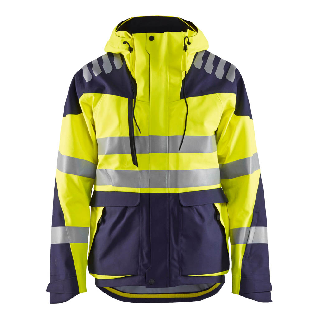 High Vis Shelljacke aus einem hochqualitativen wind- und wasserdichten Stoff mit exzellenter Atmungsaktivität. Die Bewegungsfreiheit wurde durch den flexiblen Stoff und die Stretch-Einsätze an kritischen Bereichen verbessert. Der Zwei-Wege Reißverschluss der Jacke und die vorgeformten Ärmel bieten eine optimale Passform. Die Jacke weist verschweißte Nähte auf und ist ideal das ganze Jahr zu tragen, bei kälterem Wetter mit einer extra Fleecelage oder mit unserer Isolationsjacke. Verstellbare und abnehmbare Kapuze. Atmungsaktivität von 16,000 g/m_/24h und Wasserdichtigkeit von 20,000 mm. Zertifiziert nach EN ISO 20471 Klasse 2, EN 343 Klasse 3.3.
