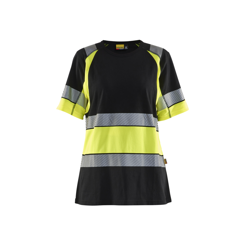 Ein modernes, weiches und bequemes T-Shirt aus Baumwolle im Damenschnitt. Der High Vis Stoff besitzt eine feuchtigkeitsableitende und geruchshemmende Funktion. Das T-Shirt hat einen Rundhalsausschnitt mit verstärkter Halsnaht, unterbrochene reflektierende Bereiche für gute Belüftung und Stretch-Eigenschaften für optimale Bewegungsfreiheit. Der dunkle Teil des T-Shirts besteht aus 100% Baumwolle und der High Vis Teil aus 100% Polyester. Auch als Herrenmodell 3421 erhältlich.