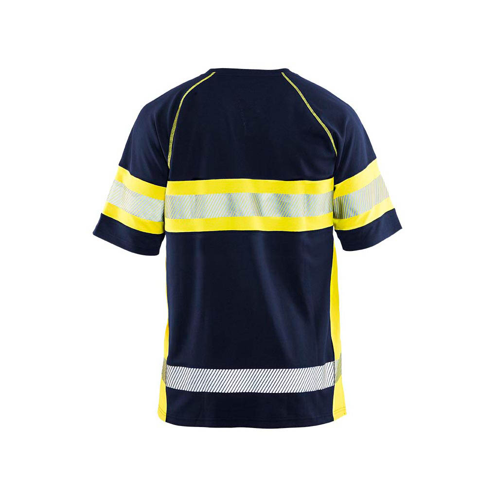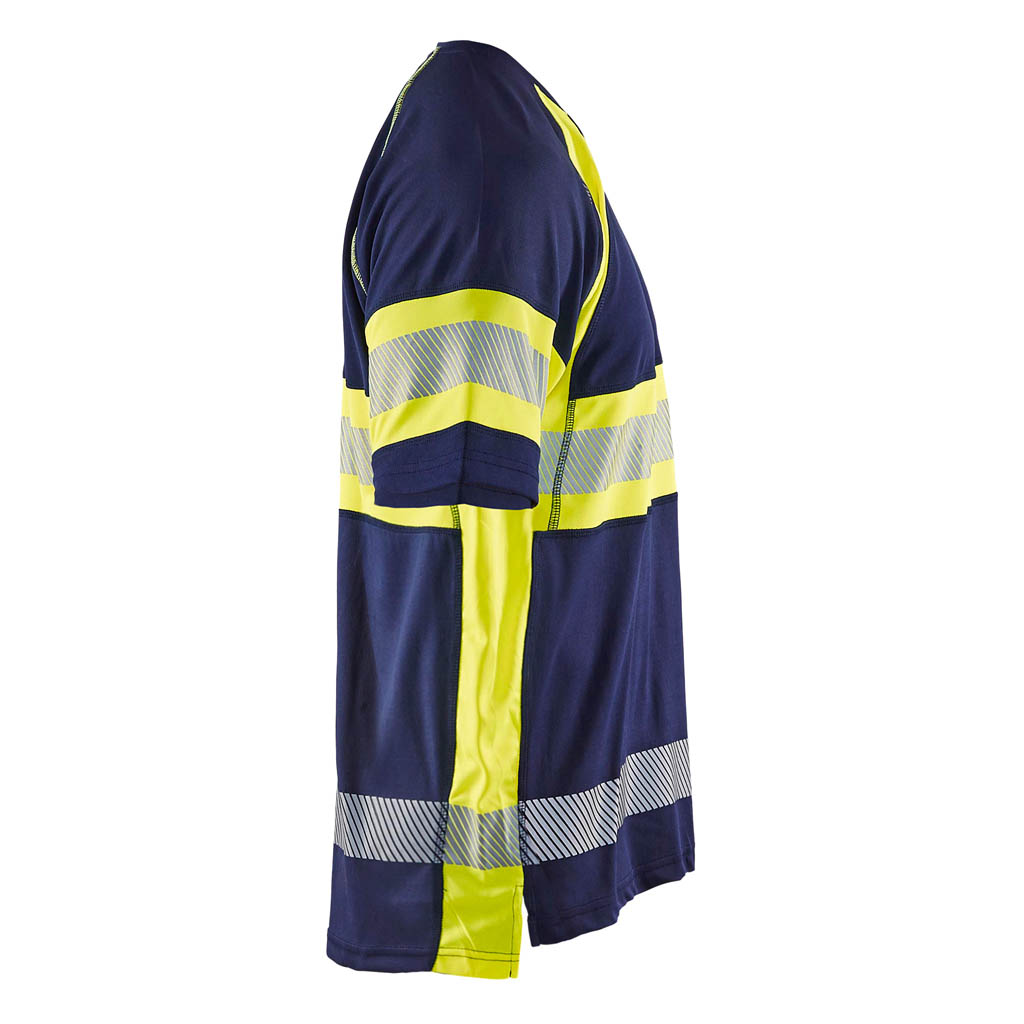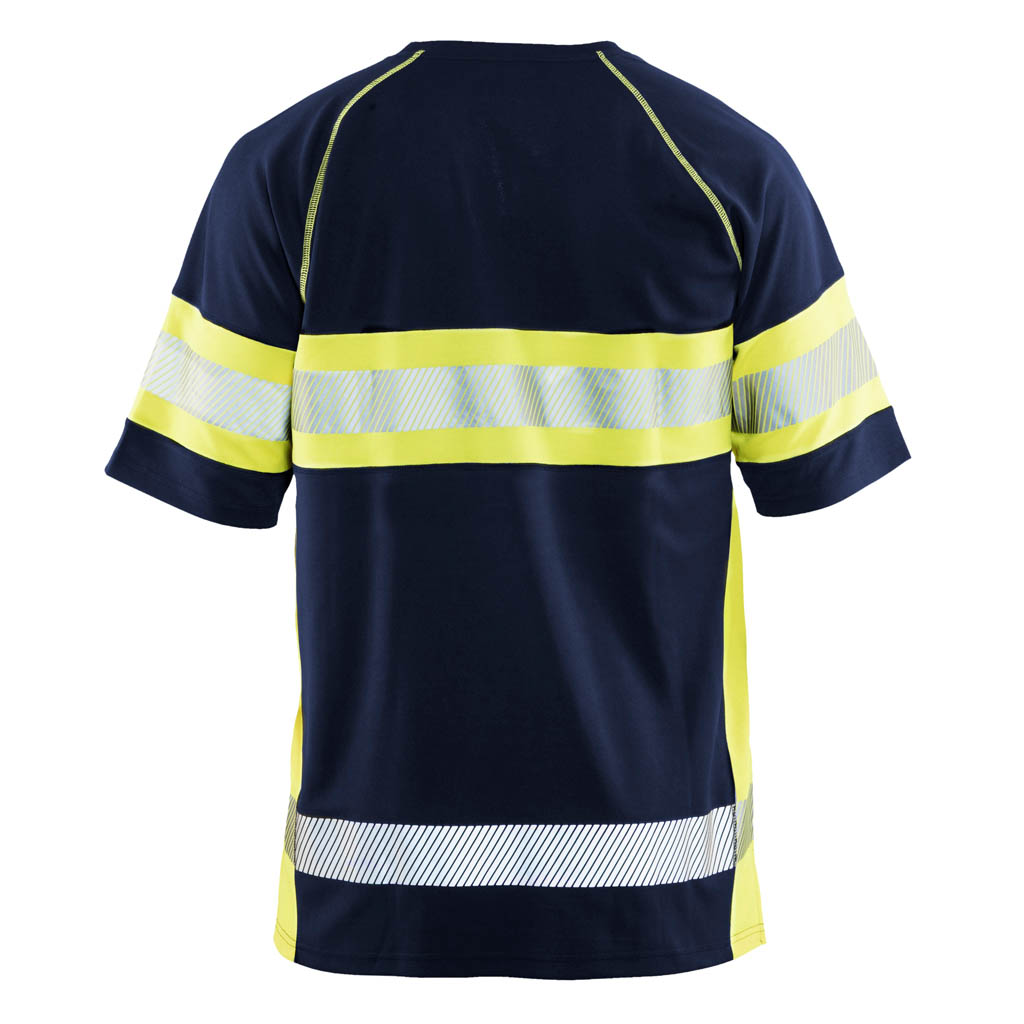 High Vis T-Shirt mit Anti-Geruch Behandlung, die unangenehmen Geruch verhindert. Das T-Shirt absorbiert die Feuchtigkeit und hat einen UV-Schutz. Die Reflexstreifen sind für extra Stretch und Atmungsaktivität unterbrochen. Rundhalskragen mit verstärkten Nähten. Zertifiziert nach EN ISO 20471 Klasse 1, Zertifizierungsgruppe D und EN 13758-2 UPF 40+.