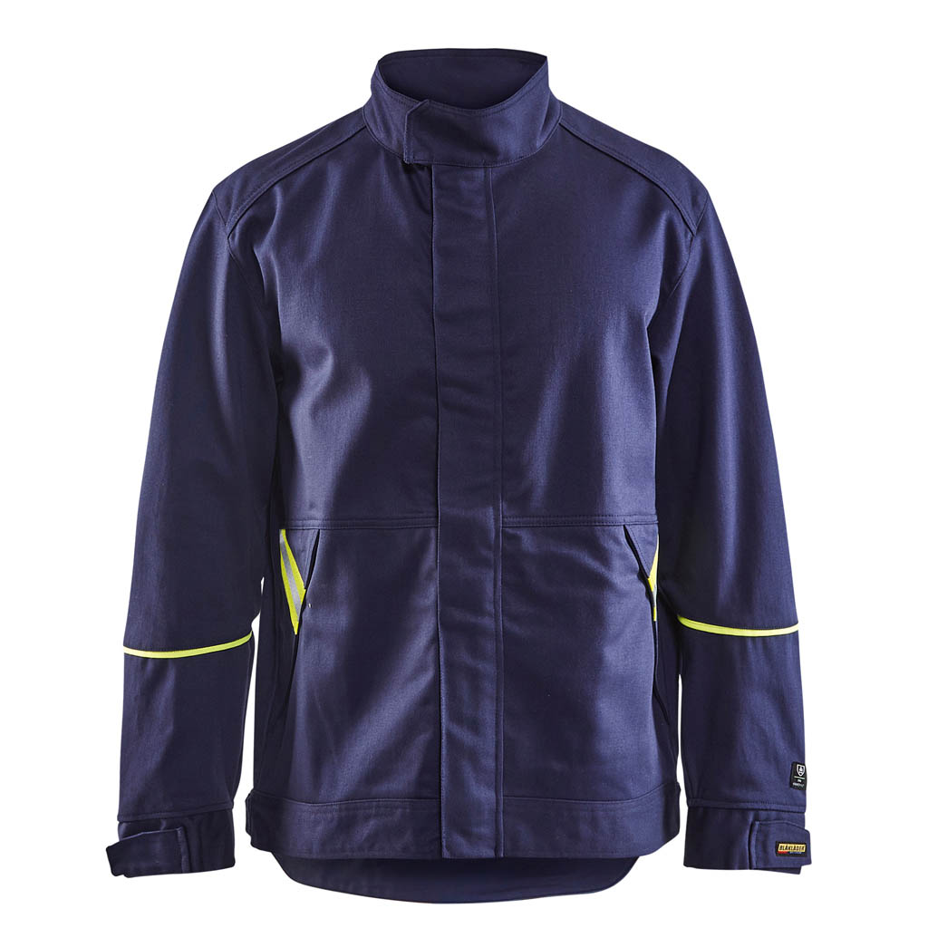 Schweißer Jacke mit Reflexdetails für höhere Sichtbarkeit. Komfortabler Schnitt mit vorgeformten Ellbögen und einstellbarem Armabschluss mit Klettverschluss. Zertifiziert nach EN 1149-5. EN ISO 11611 Klasse 2 , A1+A2, EN ISO 11612 A1, A2, B1, C1, E3, F1. IEC 61482-2 Klasse 1.