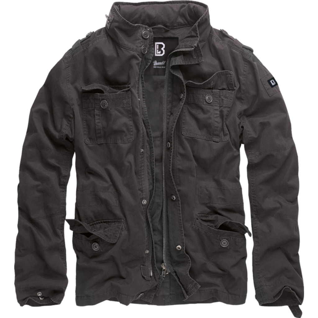 modifizierte Feldjacke / Logo Badge / versteckte Kapuze im Kragen / Stehkragen mit Kunstlederapplikation (100% Polyurethan) / Used-Effekte
