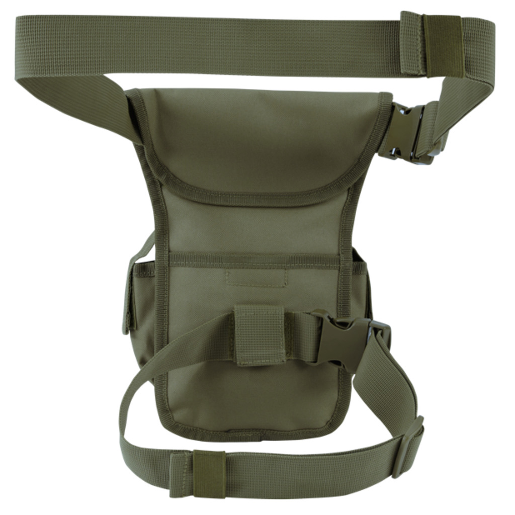 robustes 600DEN Polyester Material / hochwertige Reißverschlüsse mit Zip-Pullern / verstell- und ablösbarer Hüftgurt - max. 135 cm / verstell- und ablösbarer Oberschenkelgurt - max. 80 cm / großes Hauptfach mit Klettverschluss / 2 seitliche Taschen mit Klettverschluss / Smartphonetasche mit Reißverschluss / große Klettfläche für Patches / versteckte Zusatztaschen