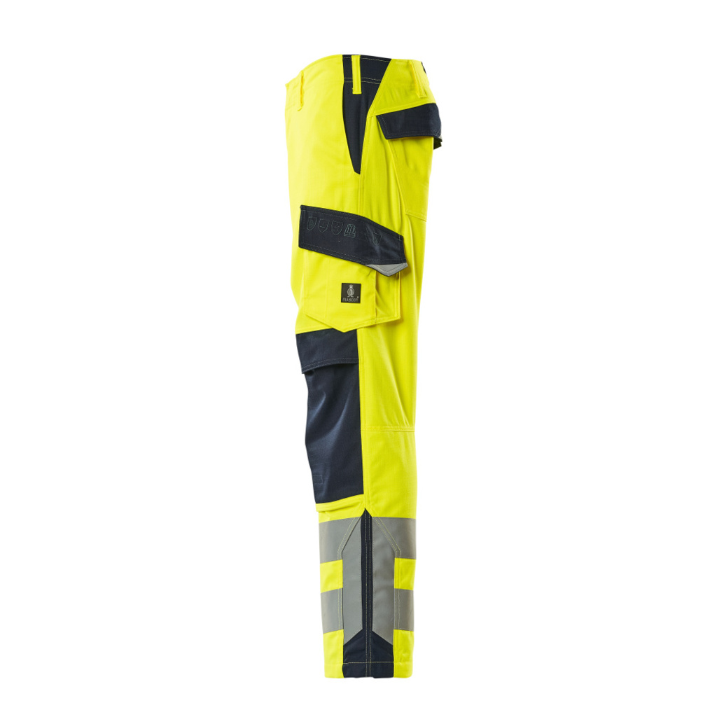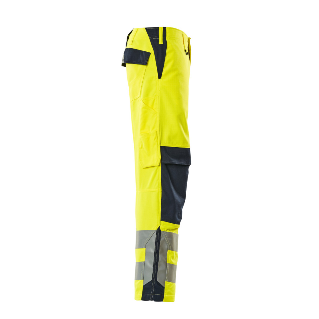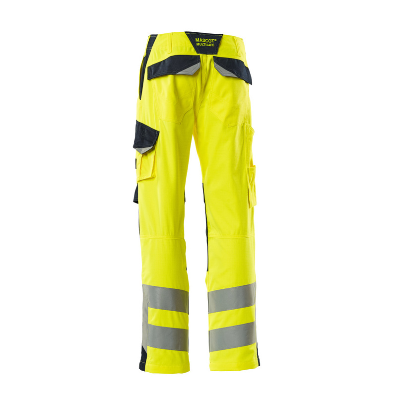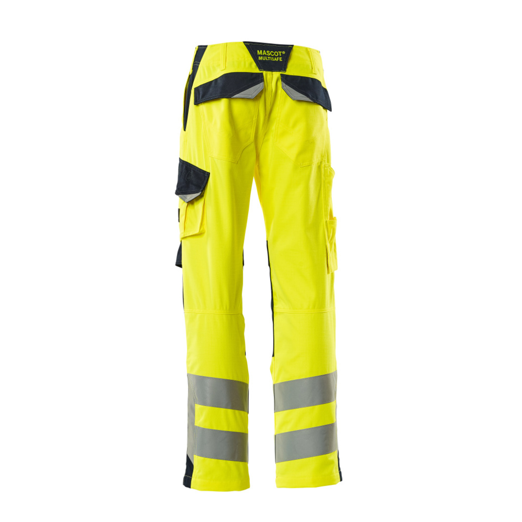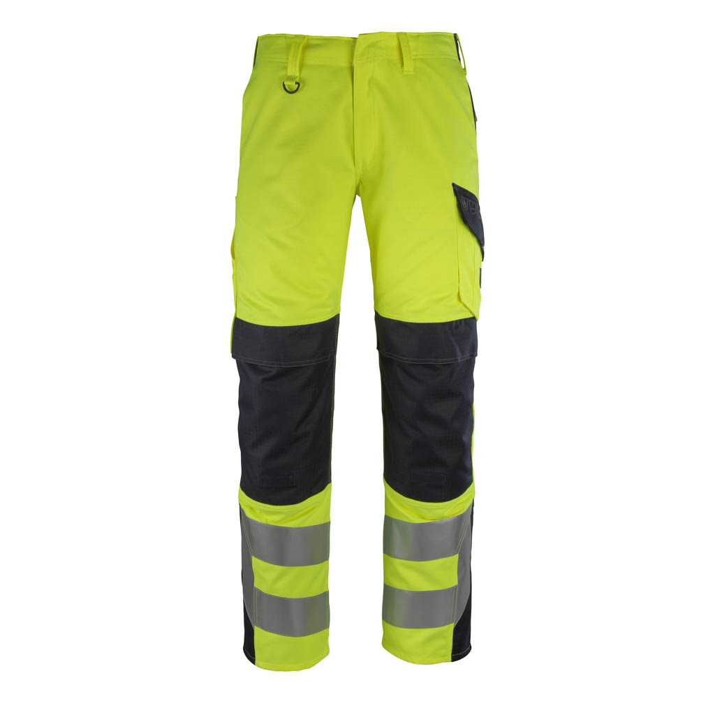 Zweifarbig. Fluoreszierend mit Reflexen. Antistatisch, flammhemmend und mit Säureschutz. Schmutzabweisend. Schützt bei Lichtbögen und bei gelegentlichem Schweißen. Zweifache und dreifache Kappnähte an den Beinen und im Schritt. Gürtelschlaufen. Niedrige Taille und formgeschnittener Bund. D-Ring. Hosenschlitz mit Reißverschluss. Hosenbeine sind ergonomisch geformt. Vordertaschen. Gesäßtaschen, verstärkt, mit Patte und verdeckten Druckknöpfen. Schenkeltasche mit Patte und verdeckten Druckknöpfen. Handyschenkeltasche. Zollstocktasche, verstärkt. Knietaschen, höhenregulierbar und mit Patte sowie Eingriff von oben. Wir empfehlen den 00718-100, 50451-916 & 20118-915 Knieschutz zu diesem Modell.