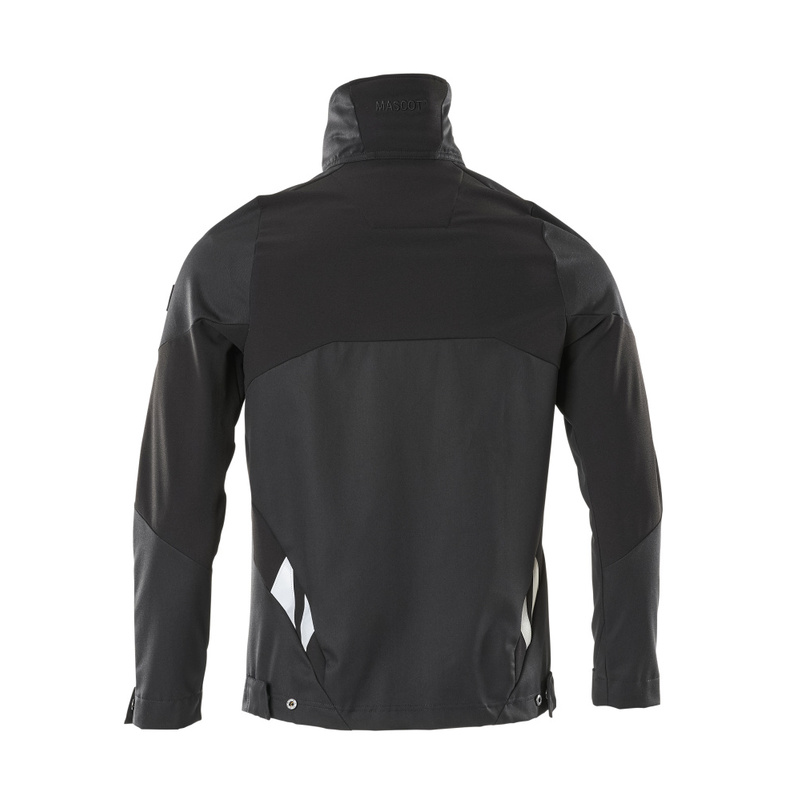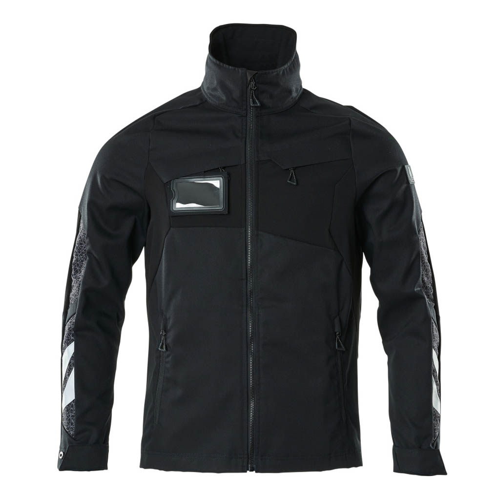 Teile des Produktes sind aus Stretchstoff. Kombination der leichten Stoffqualität 442 und des Vier-Wege-Stretchstoffs 511. Verschluss mit Reißverschluss und inwendiger Wetterschutzleiste. Brusttasche mit Reißverschluss. ID-Kartenhalter ist abnehmbar. Vordertaschen mit Reißverschluss. Druckknopfregulierung an den Handgelenken und der Unterkante. Mit Druck und Reflexen.