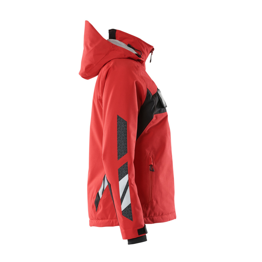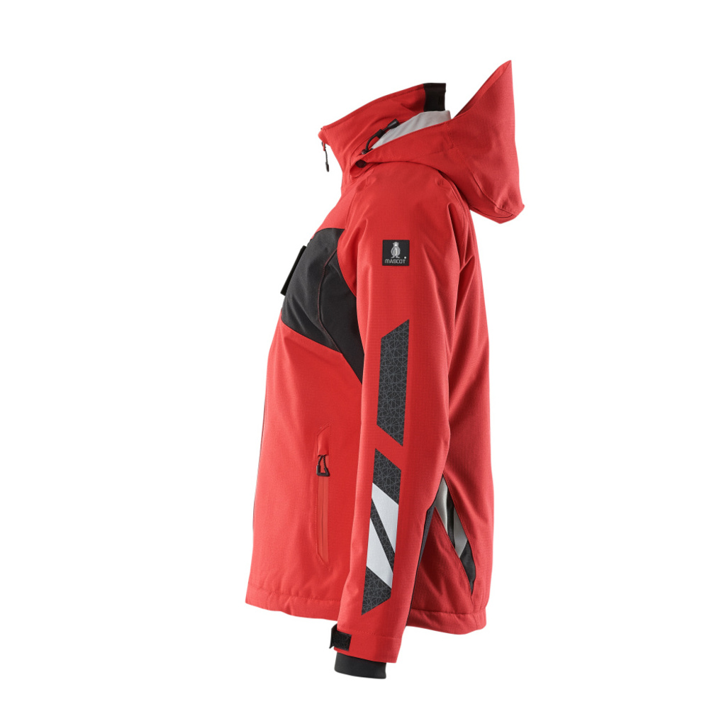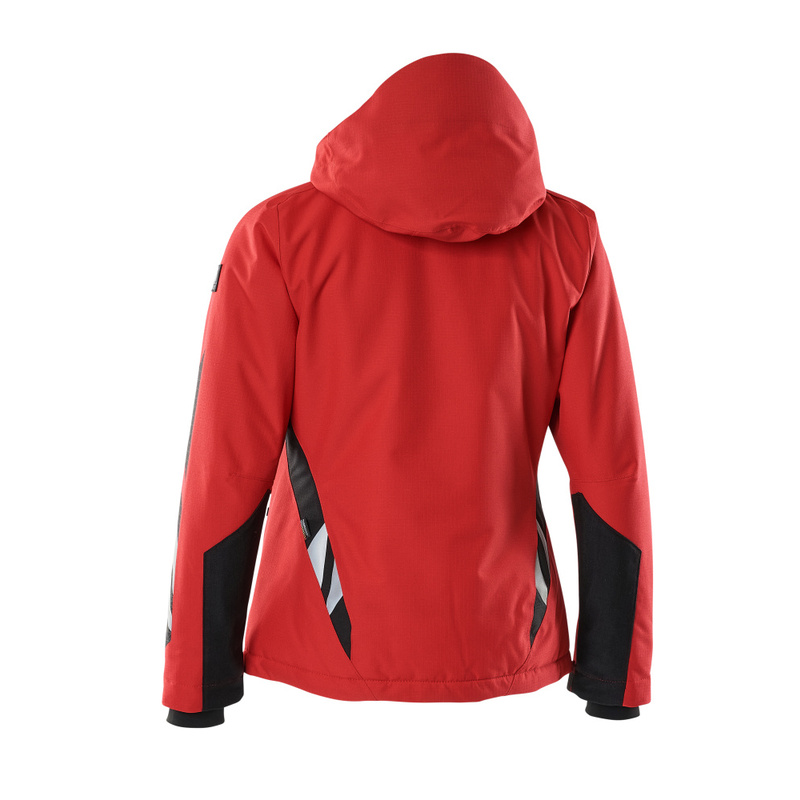 Damen-Passform. Atmungsaktiv, wind- und wasserdicht. Nähte sind verklebt. Mit CLIMASCOT® Lightweight Insulation. Kapuze ist abnehmbar, gefüttert und mit verstellbaren Elastikschnüren versehen. Verschluss mit Reißverschluss und inwendiger Wetterschutzleiste. Innentasche mit Reißverschluss. ID-Kartenhalter ist abnehmbar. Vordertaschen mit Reißverschluss. Gummizug in der Unterkante, regulierbar. Reißverschluss im Futter am Rücken zum Anbringen eines Logos/einer Stickerei. Ärmel mit CORDURA®-Verstärkung. Rippenbündchen (verdeckt unter der Wetterschutzleiste) an den Handgelenken. Mit Druck und Reflexen.