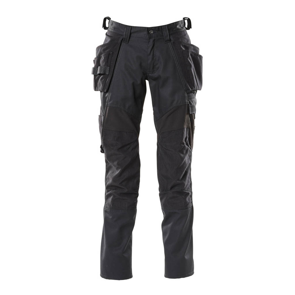 Teile des Produktes sind aus Stretchstoff. Kombination der leichten Stoffqualität 442 und des Vier-Wege-Stretchstoffs 511. Die Taschen sind im Design integriert. Zweifache Kappnähte an den Beinen und im Schritt. Hosenbeine sind ergonomisch geformt. Niedrige Taille. Gürtelschlaufen. Hosenschlitz mit Reißverschluss. Hängetaschen aus CORDURA®-Gewebe. Vordertaschen. Gesäßtaschen. Schenkeltasche mit Handytasche, Patte und verdecktem Druckknopf und integriertem ID-Kartenhalter. ID-Kartenhalter ist abnehmbar. Zollstocktasche aus CORDURA® Gewebe mit extra Taschen. Knietaschen aus strapazierfähigem CORDURA® (500 D). Einfache, individuelle Regulierung der Knietaschenhöhe. Mit Druck und Reflexen. Wir empfehlen den 00718-100, 00418-100, 50454-916 & 20118-915 Knieschutz zu diesem Modell.