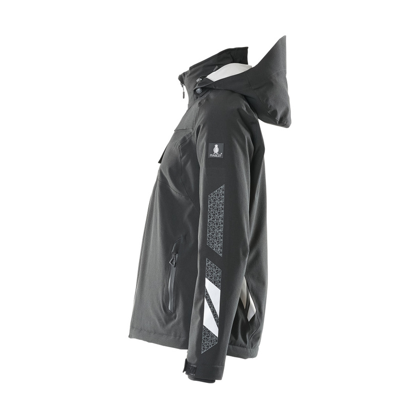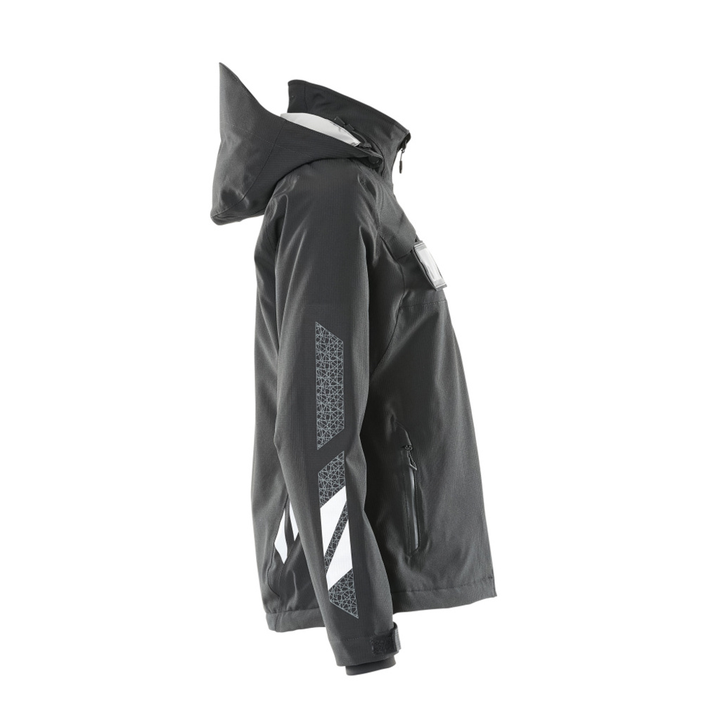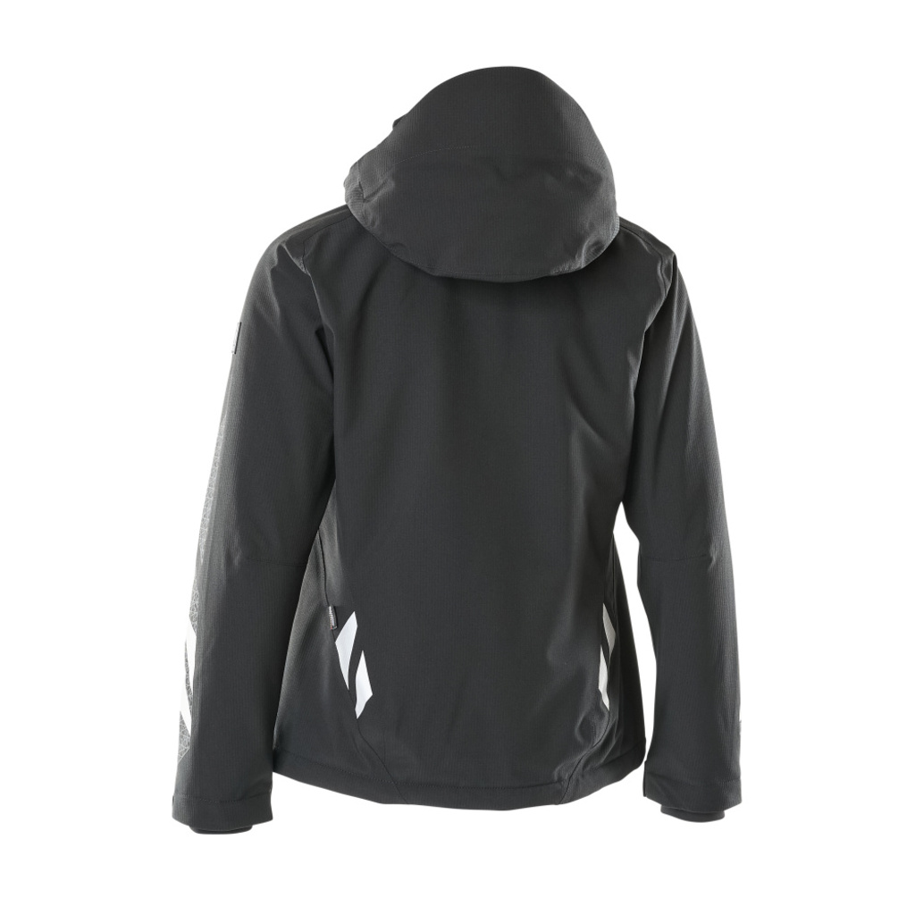 Damen-Passform. Leichte Meterware. Atmungsaktiv, wind- und wasserdicht. Nähte sind verklebt. Mit CLIMASCOT® Lightweight Insulation. Kapuze ist abnehmbar, gefüttert und mit verstellbaren Elastikschnüren versehen. Verschluss mit Reißverschluss und inwendiger Wetterschutzleiste. Innentasche mit Reißverschluss. ID-Kartenhalter ist abnehmbar. Vordertaschen mit Reißverschluss. Gummizug in der Unterkante, regulierbar. Reißverschluss im Futter am Rücken zum Anbringen eines Logos/einer Stickerei. Rippenbündchen (verdeckt unter der Wetterschutzleiste) an den Handgelenken. Mit Druck und Reflexen.