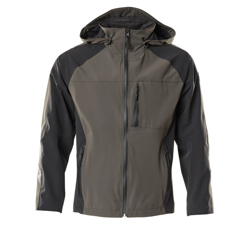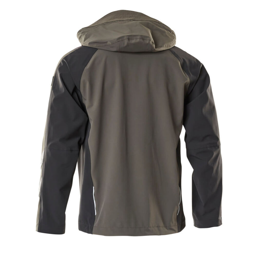 Vier-Wege-Stretchstoff mit geringem Gewicht und hoher Strapazierfähigkeit. Atmungsaktiv, wind- und wasserdicht. Nähte sind verklebt. Verschluss mit wasserdichtem Reißverschluss und inwendiger Wetterschutzleiste. Kapuze ist abnehmbar, gefüttert und mit verstellbaren Elastikschnüren versehen. Brusttaschen mit Reißverschluss. Ergonomisch geschnittene Ärmel ermöglichen hohe Bewegungsfreiheit. Vordertaschen mit Reißverschluss. Rücken ist verlängert. Gummizug in der Unterkante, regulierbar. Rippenbündchen (verdeckt unter der Wetterschutzleiste) an den Handgelenken. Reflexeffekte.
