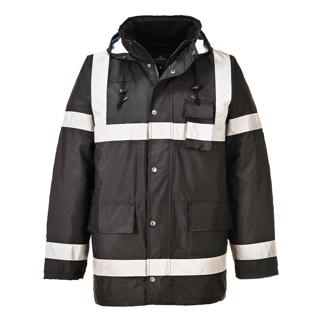 Die Iona Lite Jacke bietet zusätzliche Sichtbarkeit bei trüben Bedingungen. Zur Ausstattung gehören zwei große Taschen, eine leicht zugängliche externe Handy-/Funkgerätetasche auf der Brust und ein Kordelzug an Kapuze und Saum für eine gute Passform.