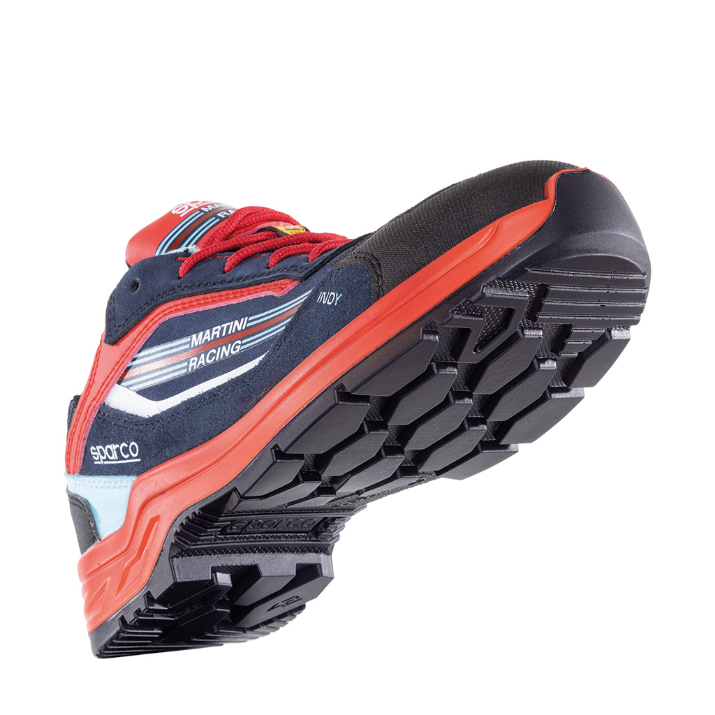 • Luftige hochgesteppte Klima-Tex Polsterzunge mit Martini Racing beflaggtem PU-Abschluss